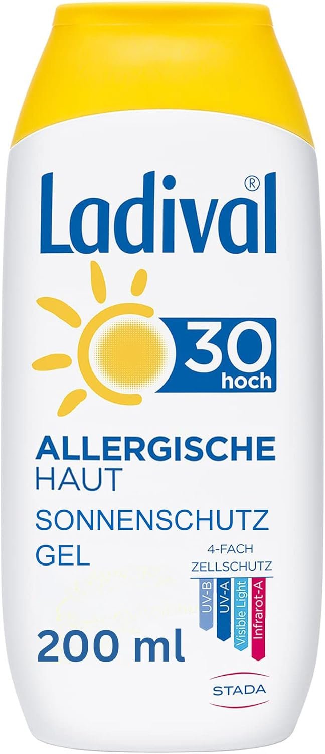 Gel solar Ladival para pieles alérgicas con factor de protección solar 30 que se adapta perfectamente a las necesidades de pieles alérgicas: el gel sin grasa e impermeable con factor de protección 30 no contiene emulsionantes y es ideal para la tendencia a la alergia solar o el acné de Mallorca y la piel grasa. Tiene una formulación ligera sin aceites de silicona (libre), sin perfume y sin conservantes. El gel no se pega y es fácil de distribuir. Se absorbe rápidamente y deja una agradable sensación en la piel. Práctico: la botella se puede colocar en la parte superior para vaciarla por completo. Indispensable para pieles alérgicas: el gel Après de Ladival cuida la piel después de la exposición al sol Ladival piel alérgica, enrojecimiento, hinchazón o picor, las reacciones alérgicas al sol son variadas. Debido a su mayor sensibilidad, el sol puede ser un factor considerable de estrés para las pieles alérgicas. Pero los productos solares falsos pueden causar reacciones severas de la piel. Por lo tanto, es tan importante para los alérgicos un cuidado adaptado a sus necesidades especiales de la piel. Previene las quemaduras solares y al mismo tiempo protege el revestimiento de ácidos natural de la piel. La crema solar Ladival para pieles alérgicas se aplica exactamente en este punto y evita que la estancia en el sol provoque enfermedades cutáneas. IMPORTANTE: tanto si estás a la sombra como bajo el sol directo, aplicar crema con una loción solar de alta calidad es indispensable Ladival para una piel sana del sol, cosmética solar que satisface las diversas necesidades de la piel, esta misión se compromete a Ladival. Porque un bronceado de la piel sin el uso de crema solar puede provocar un daño duradero de las células de la piel. Ya sea durante o después de la estancia en el sol, Ladival ofrece pura tolerancia a la piel y renuncia a aditivos irritantes.