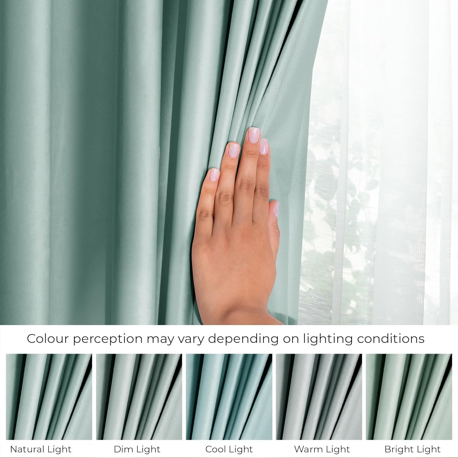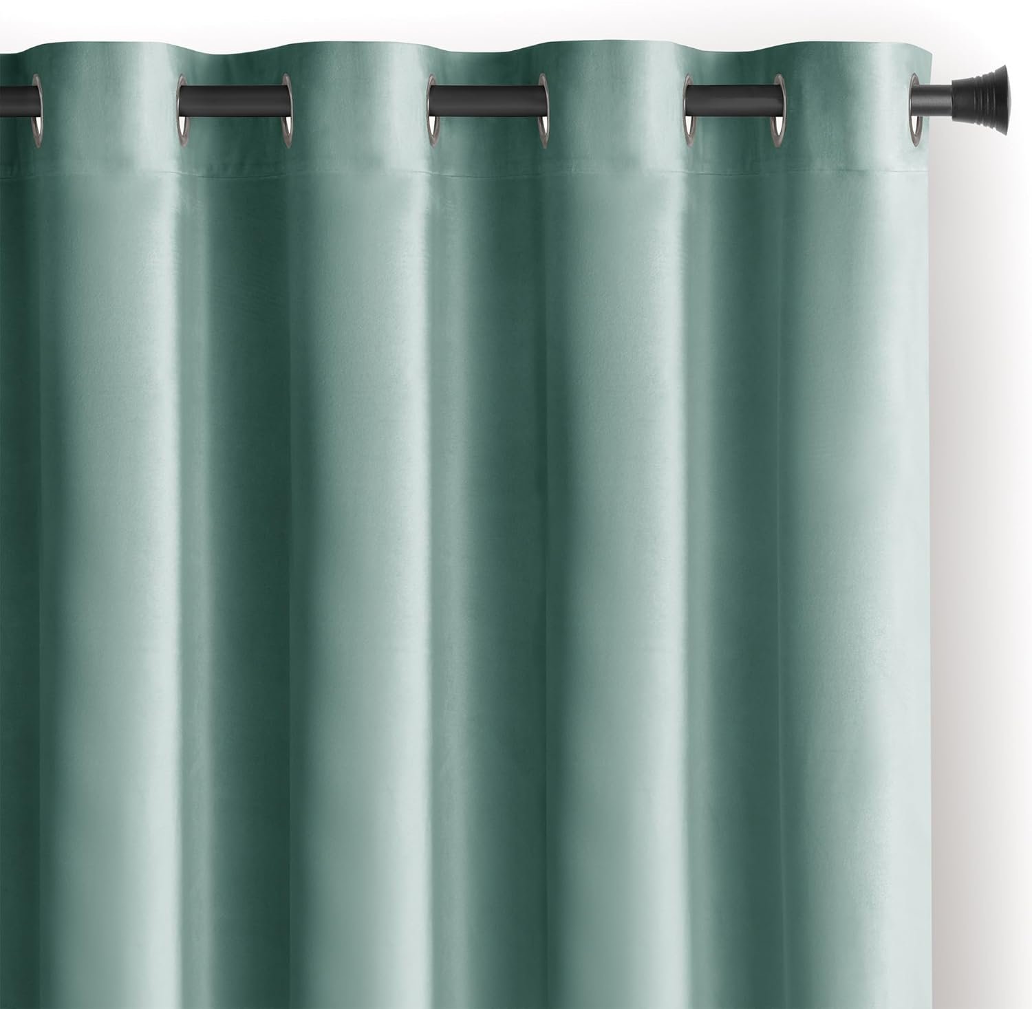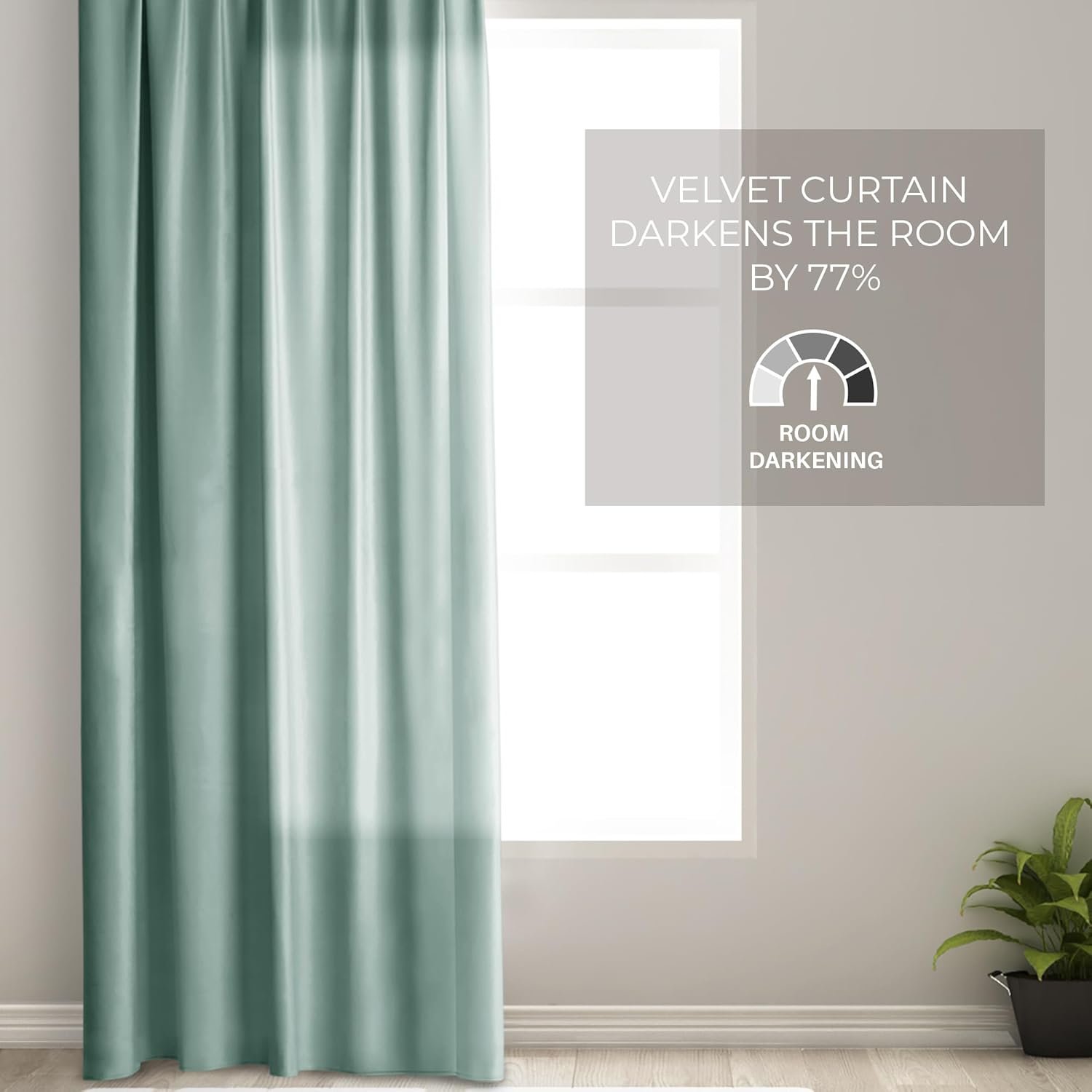 AmeliaHome Juego de Cortinas de 270 x 140 cm con alzapaños de 54 x 10 cm, Aspecto de Terciopelo Menta, 1 Unidad con Ojales, Terciopelo, para decoración de Ventanas, Cortina Decorativa