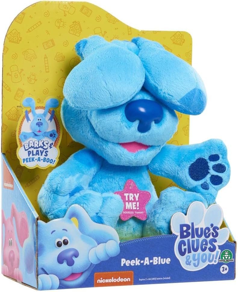 • Peek-A-Boo Plush Blue es un peluche interactivo de Blue, el perro protagonista de Las Pistas de Blue y Tú, con movimiento y sonido