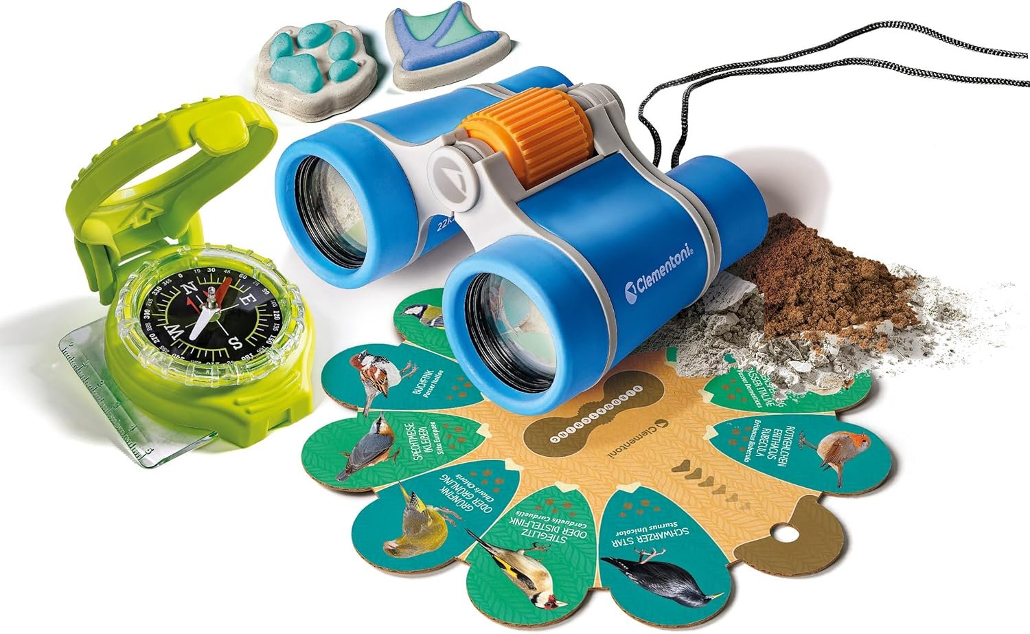 • El juego incluye binoculares, brújula y otras herramientas para pequeños exploradores a los que les gusta pasar tiempo al aire libre.