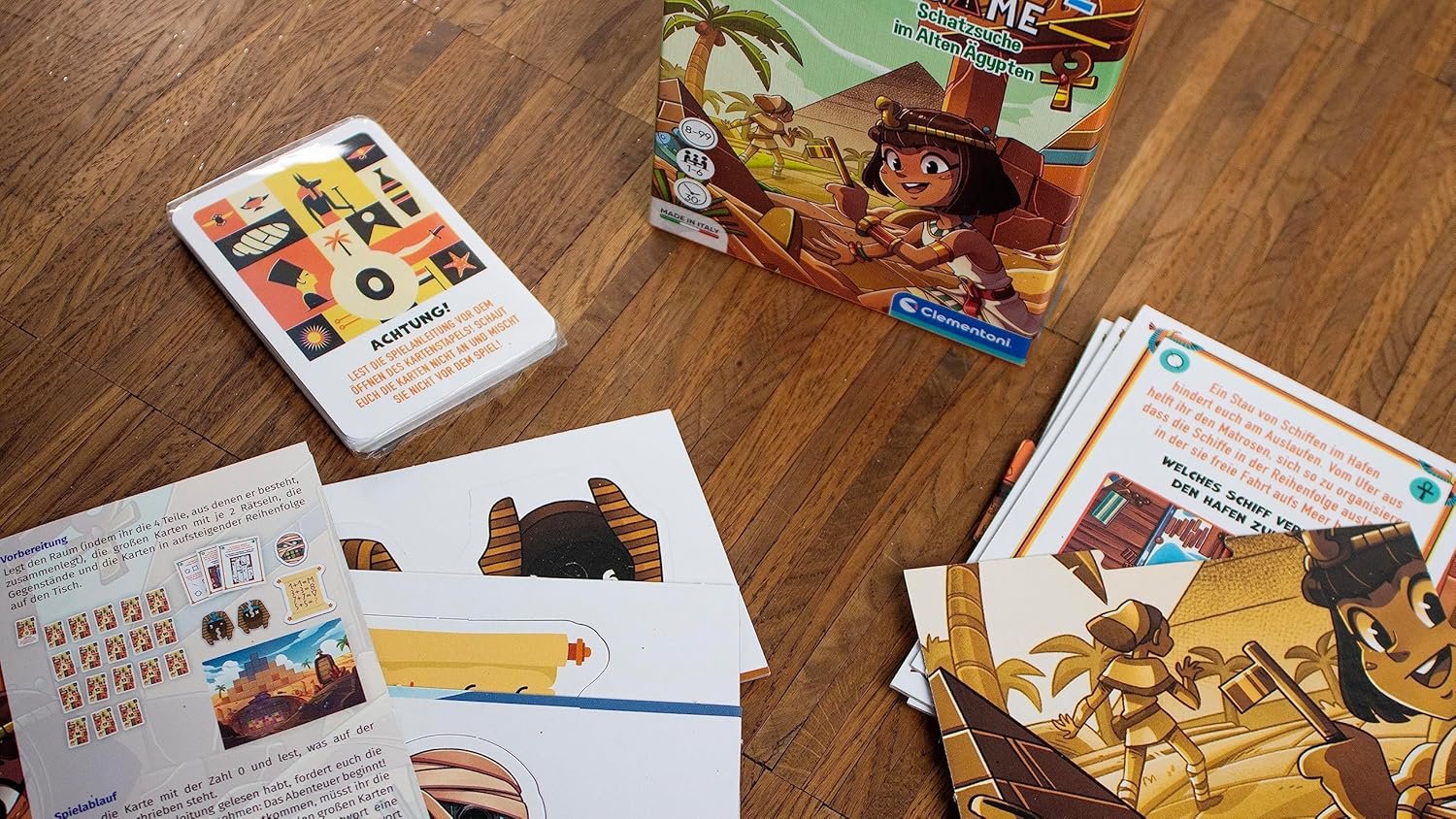 Con el juego de rompecabezas Galileo «Búsqueda del tesoro en el antiguo Egipto» está garantizado para toda la familia. La tendencia de Escape Room ahora ha cautivado a jóvenes y mayores por igual. Los juegos de Galileo Escape combinan la fascinante idea de juego de Escape Rooms con una divertida diversión en casa. La aventura en el Antiguo Egipto desafía a detectives de todas las edades y los lleva a una emocionante búsqueda del tesoro. El juego de mesa contiene numerosos acertijos que se deben resolver juntos como un equipo con inteligencia y lógica. Se incluye un conjunto de cartas de rompecabezas, así como elementos útiles para encontrar pistas y un tablero de juego para ensamblar. Si te quedas atascado, hay instrucciones de solución en la parte posterior de la tarjeta.