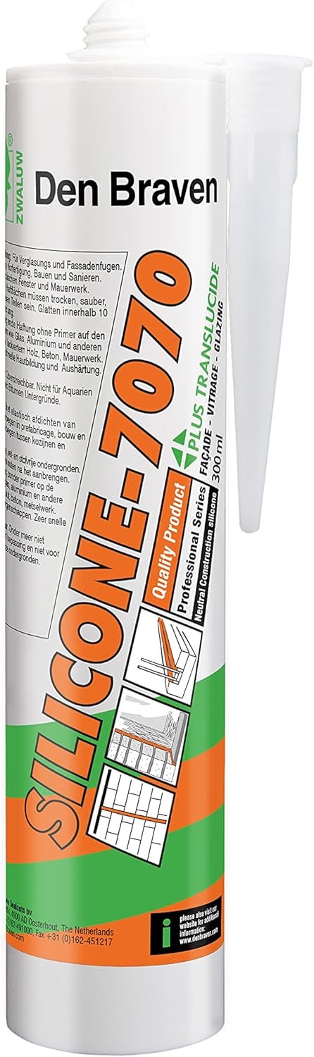 Den Braven Silicone 7070 PLUS Translúcido – Masilla de silicona neutra Alcoxy Monocomponente para el edificio – Cartucho de 300 ml