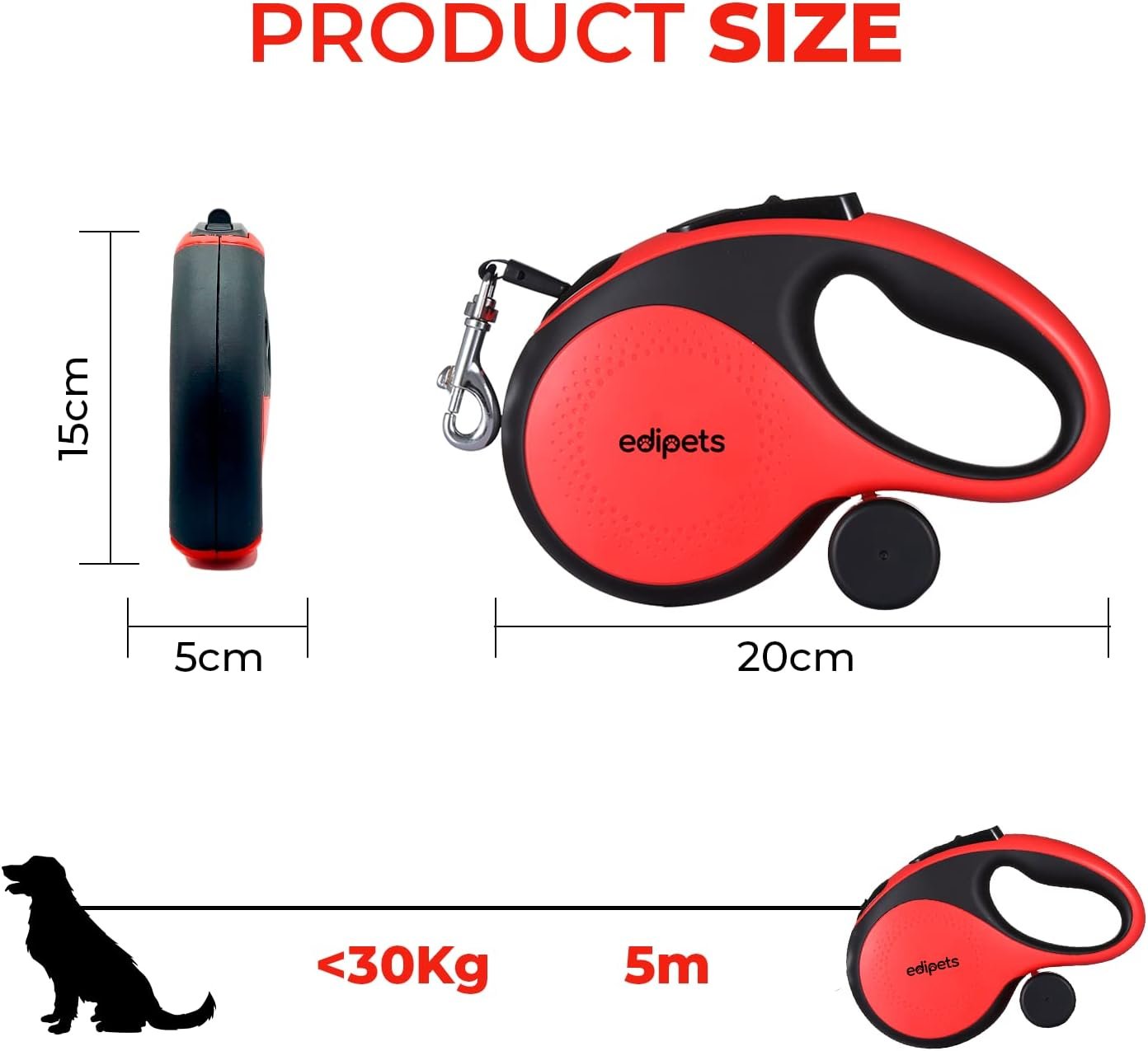 - Longitud: 5 metros (16 pies). Perros <30Kg.