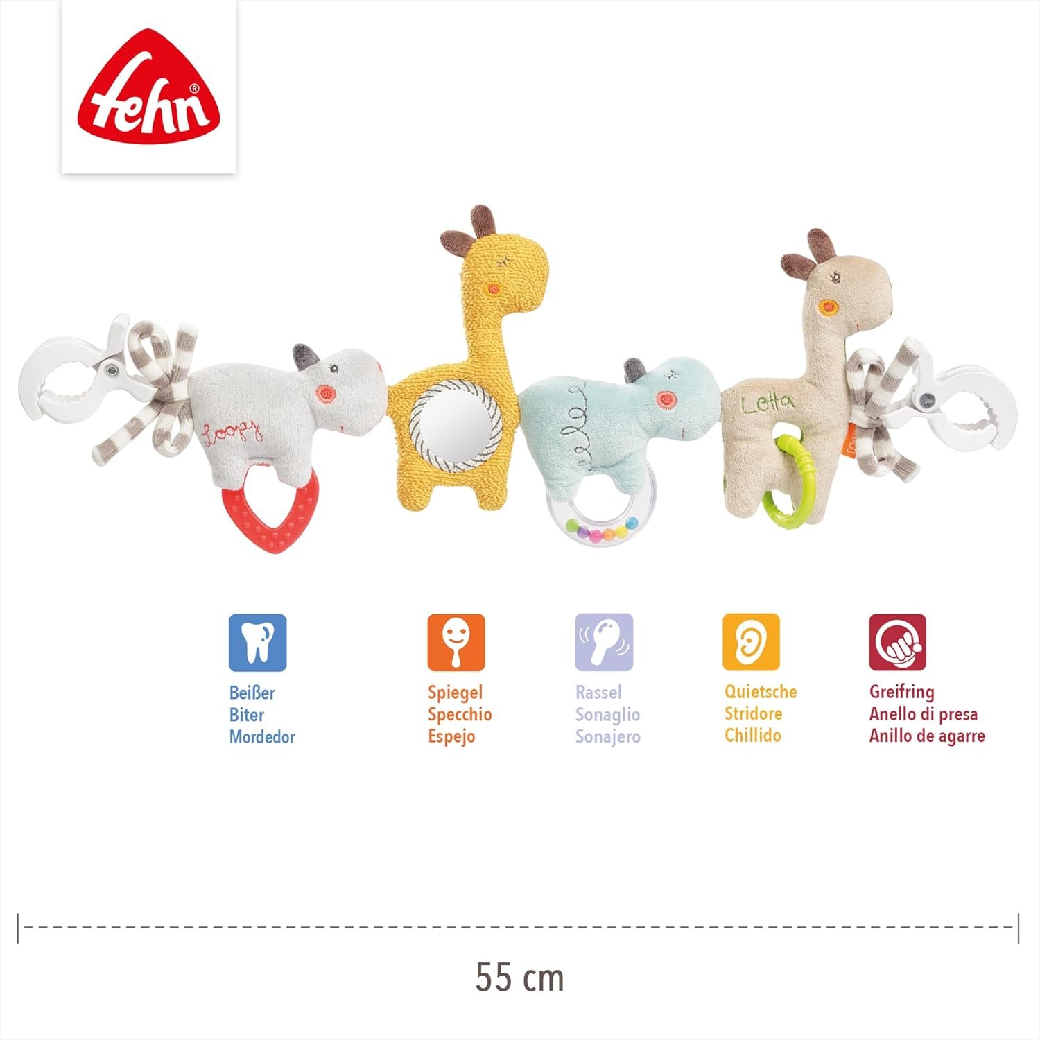 Fehn loopy y lotta 059137 – cadena para cochecito, cadena móvil con simpáticas figuras colgantes para colgar de forma flexible, para bebés y niños pequeños a partir de 0 meses, longitud: 45 cm.