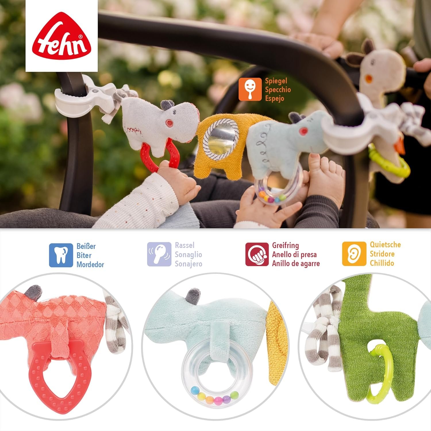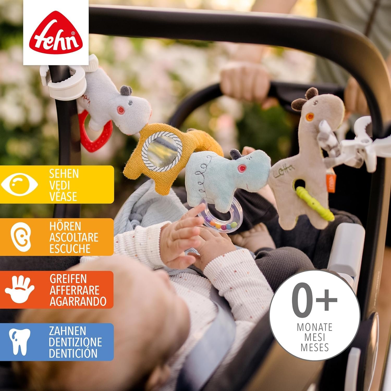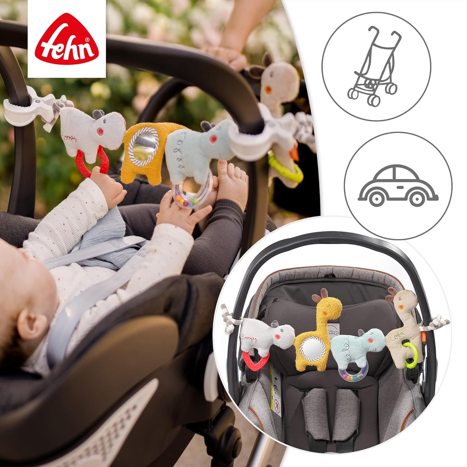 Fehn cadena cochecito móvil bebé Loopy & Lotta – Cadena móvil bebé con simpáticas figuras colgantes – Juguete para colgar flexible – Juguete cochecito para bebés y niños pequeños a partir de 0+ meses