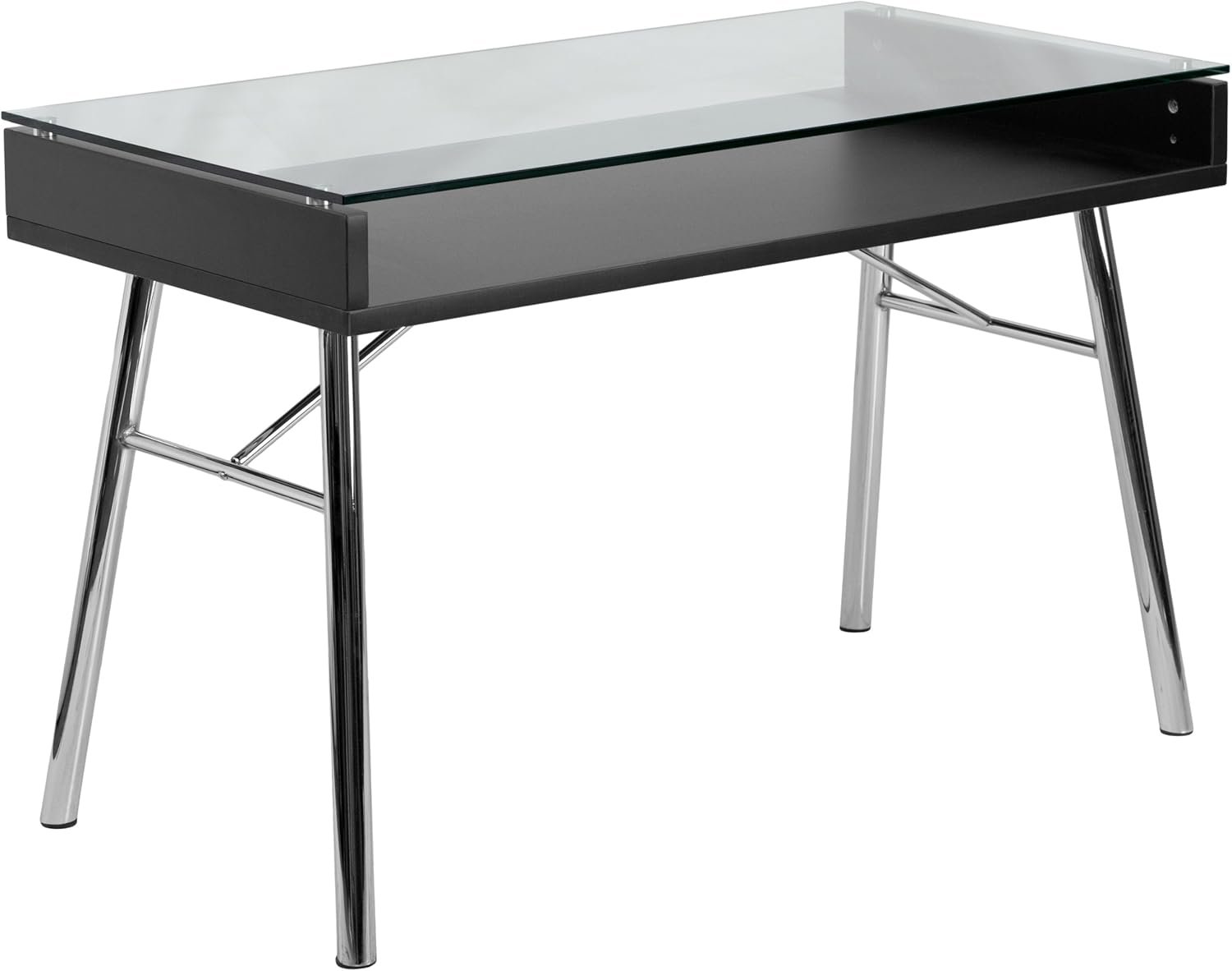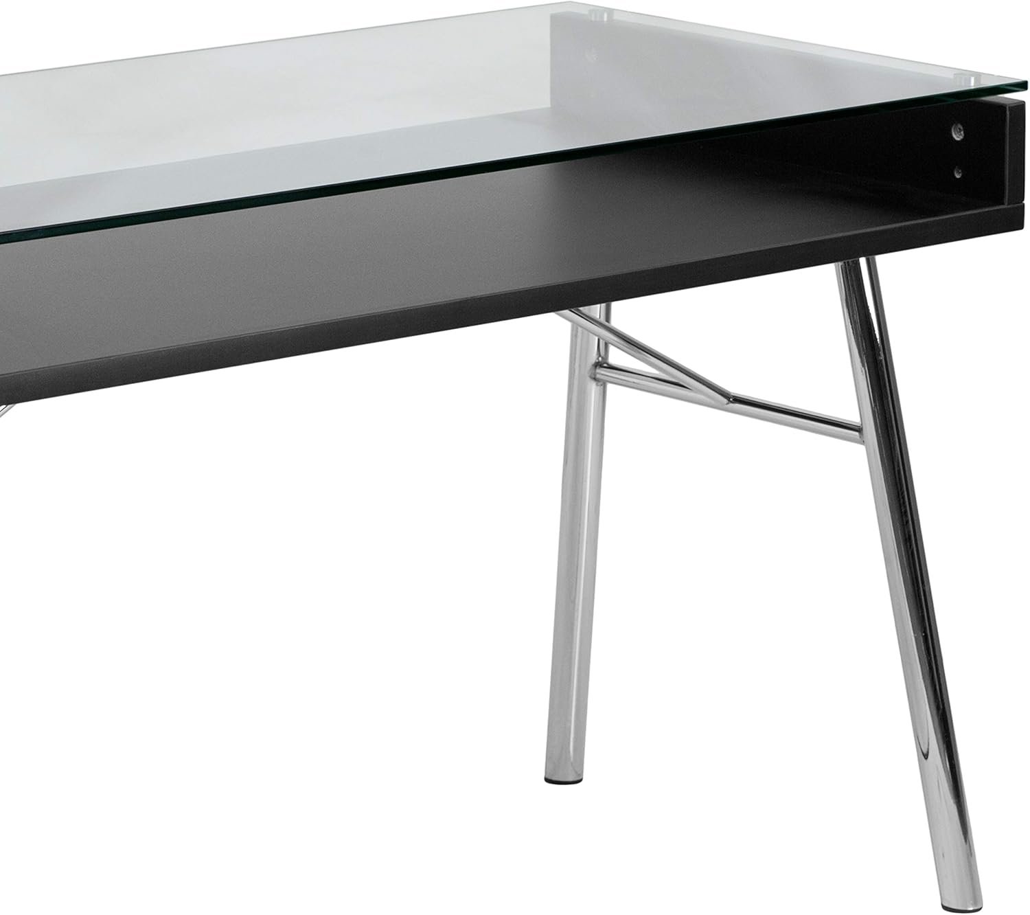 Flash Furniture Escritorio Brettford con Tapa de Vidrio Templado, Metal, Parte Superior de Cristal Transparente/Marco Cromado, 128.27000000000001 x 68.58 x 13.97 cm