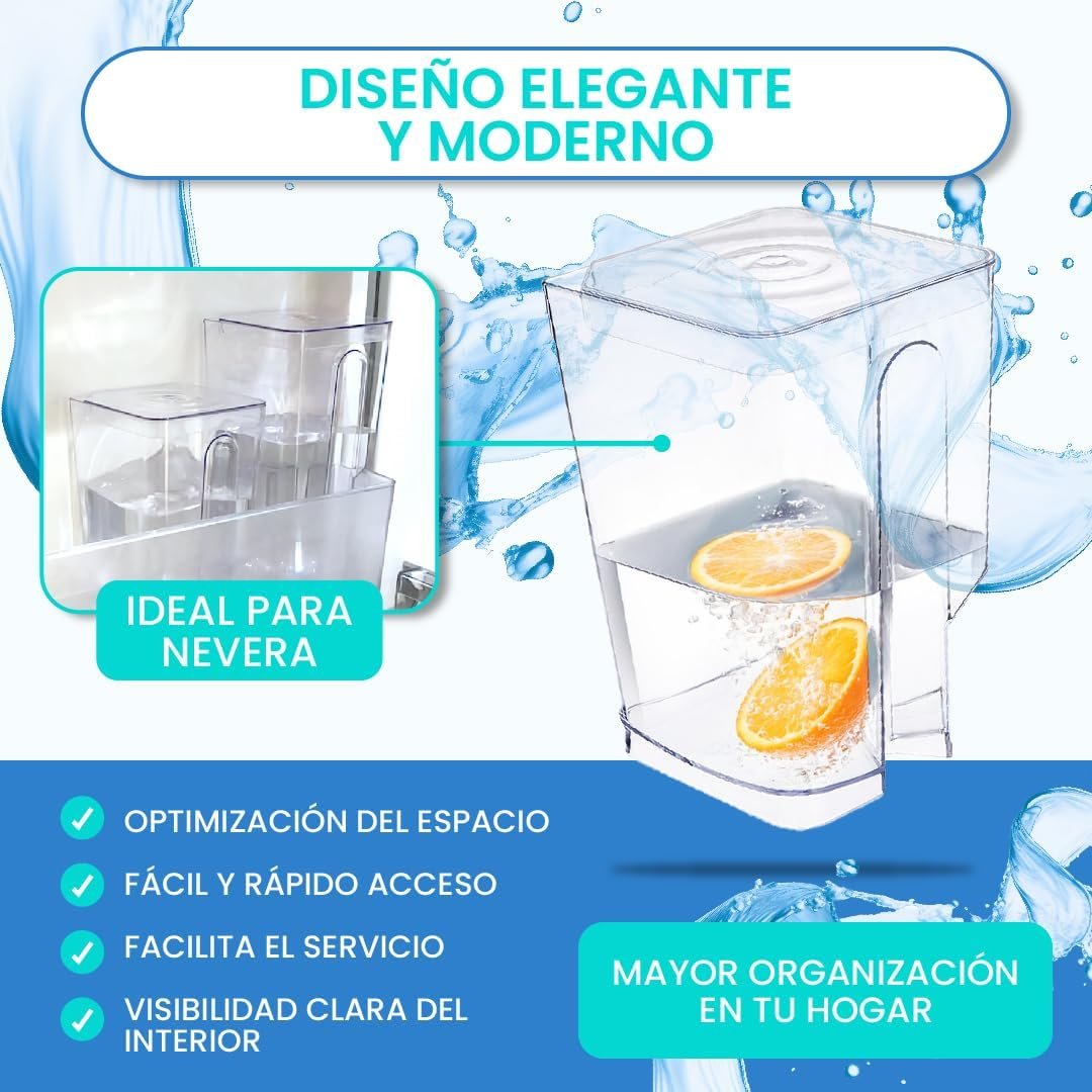 Con su capacidad generosa, diseño adaptable y características prácticas, esta jarra hará que mantenerse hidratado sea más fácil y agradable que nunca. ¡Asegúrate de tener siempre agua fresca a mano con nuestra jarra para frigorífico!