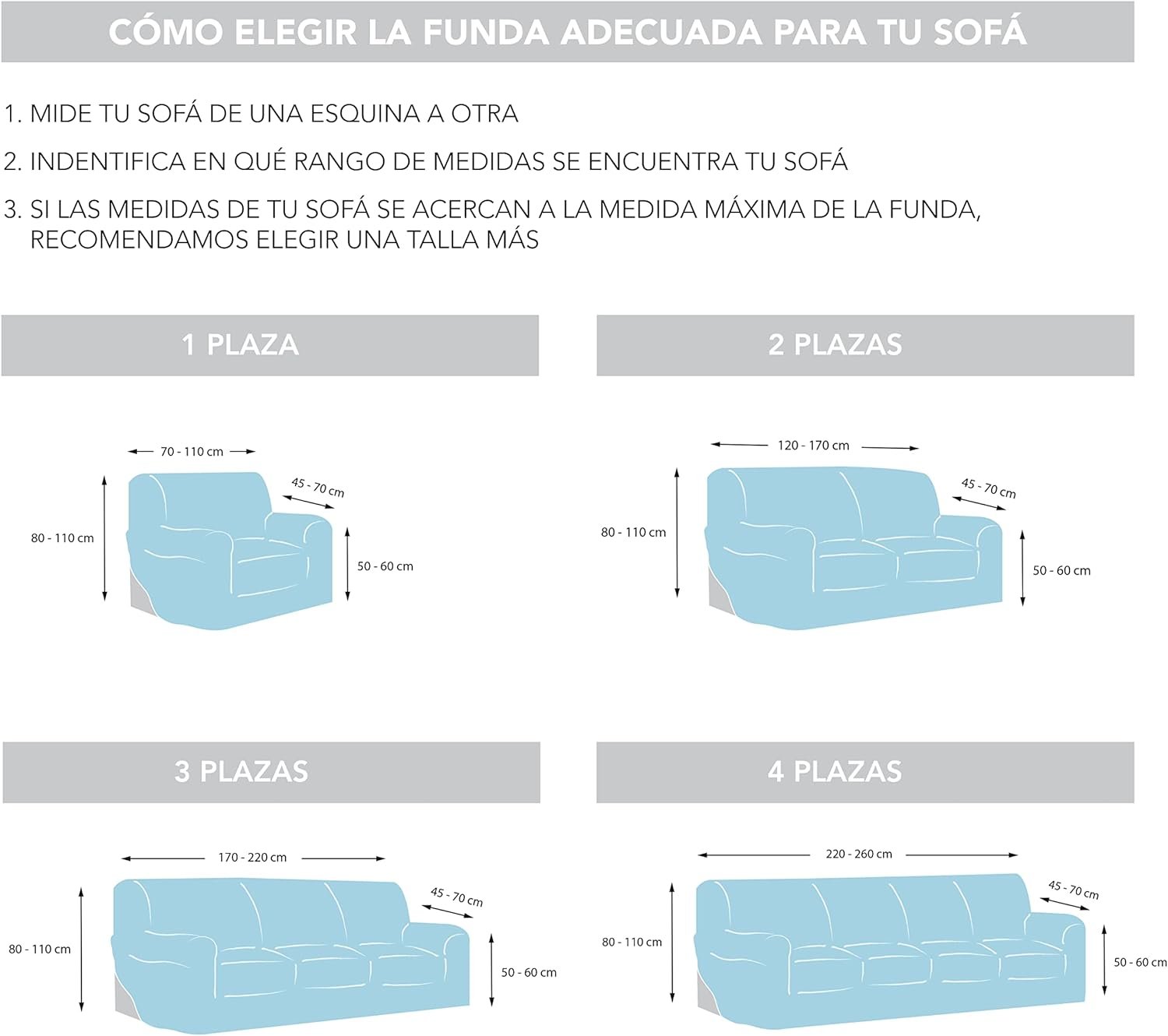 Tamaños y medidas de las funda de sofá TUNEZ