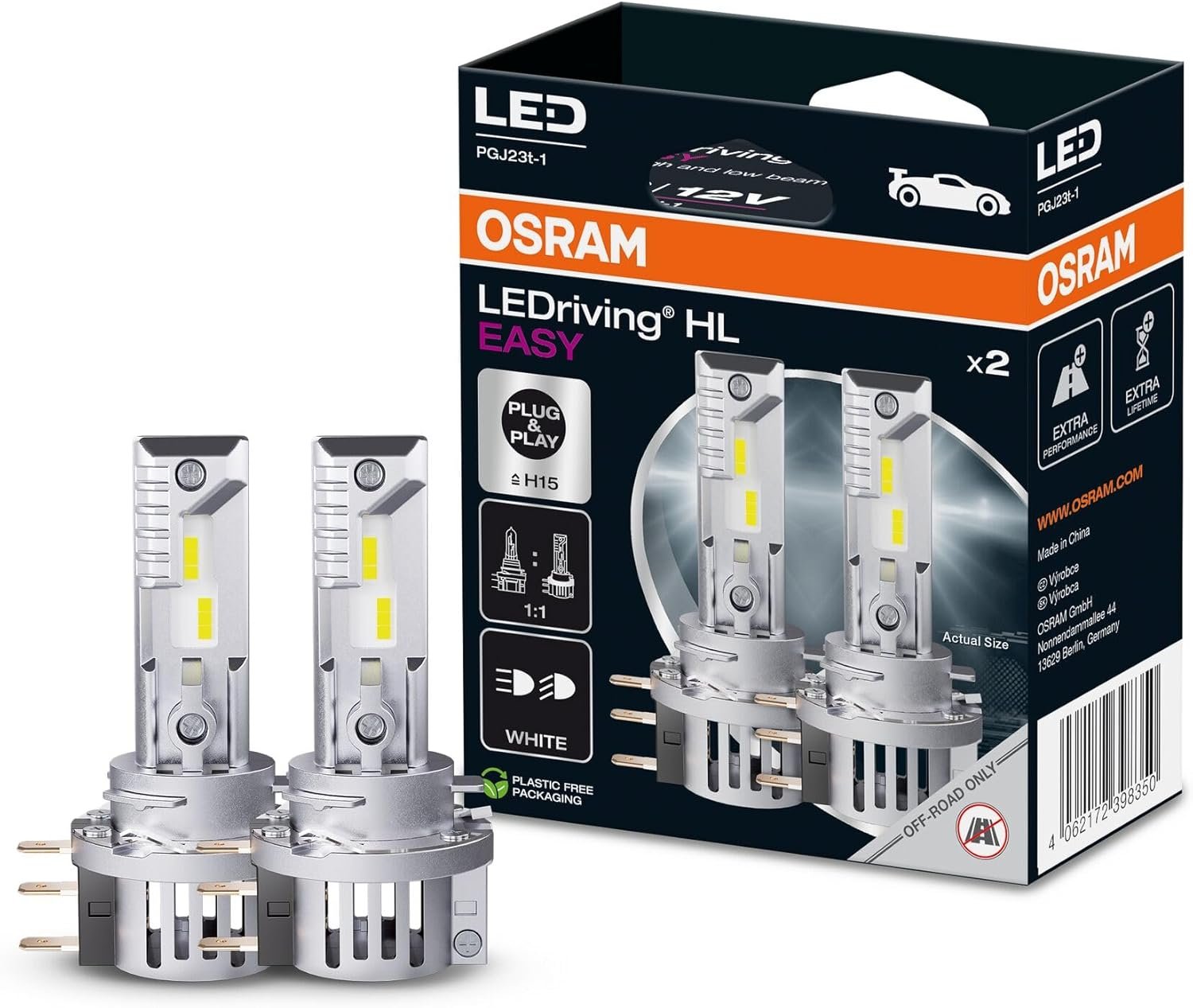 OSRAM LEDriving HL EASY ≜ H15, lámpara LED de luz de carretera y de cruce, blanco frío 6500K, no necesita accesorios, solo para uso todoterreno, sin ECE, 2 lámparas
