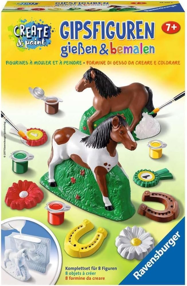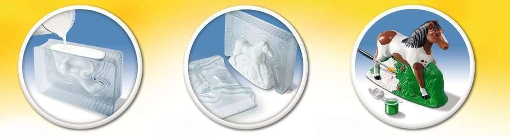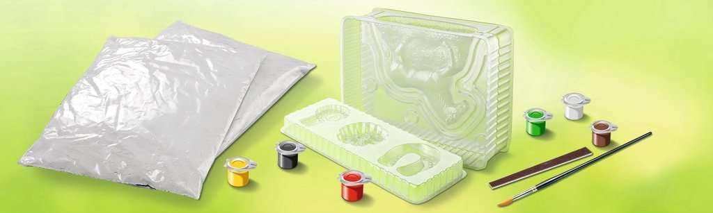 - Contenido: molde de fundición 3D, molde de fundición 2D, 2 escayolas (200 g), pincel, paleta de colores, lima, pinturas acrílicas, instrucciones (idioma español no garantizado)
